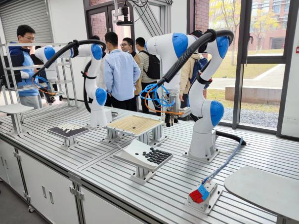 | 全英班在国际校区图书馆前合照 | 建工班在国际校区智慧工厂参观现场 |