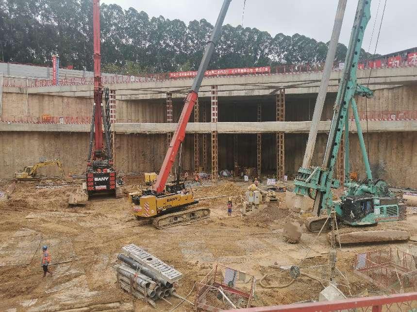 | 中铁建华南总部基坑内旋挖机施工现场 | 地下班师生在施工现场合影留念 |
