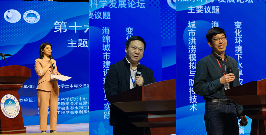 论坛第一个专题的引导报告由华南理工大学王兆礼教授汇报,随后16位专家教授陆续进行专题报告,论坛安排了14位水科学领域学者作为主持人引导论坛进程,形成主持人、汇报人以及听众的灵活高效互动框架,与会人员畅所欲言、深入交流、相互启迪,不断碰撞出新思想、新观点。