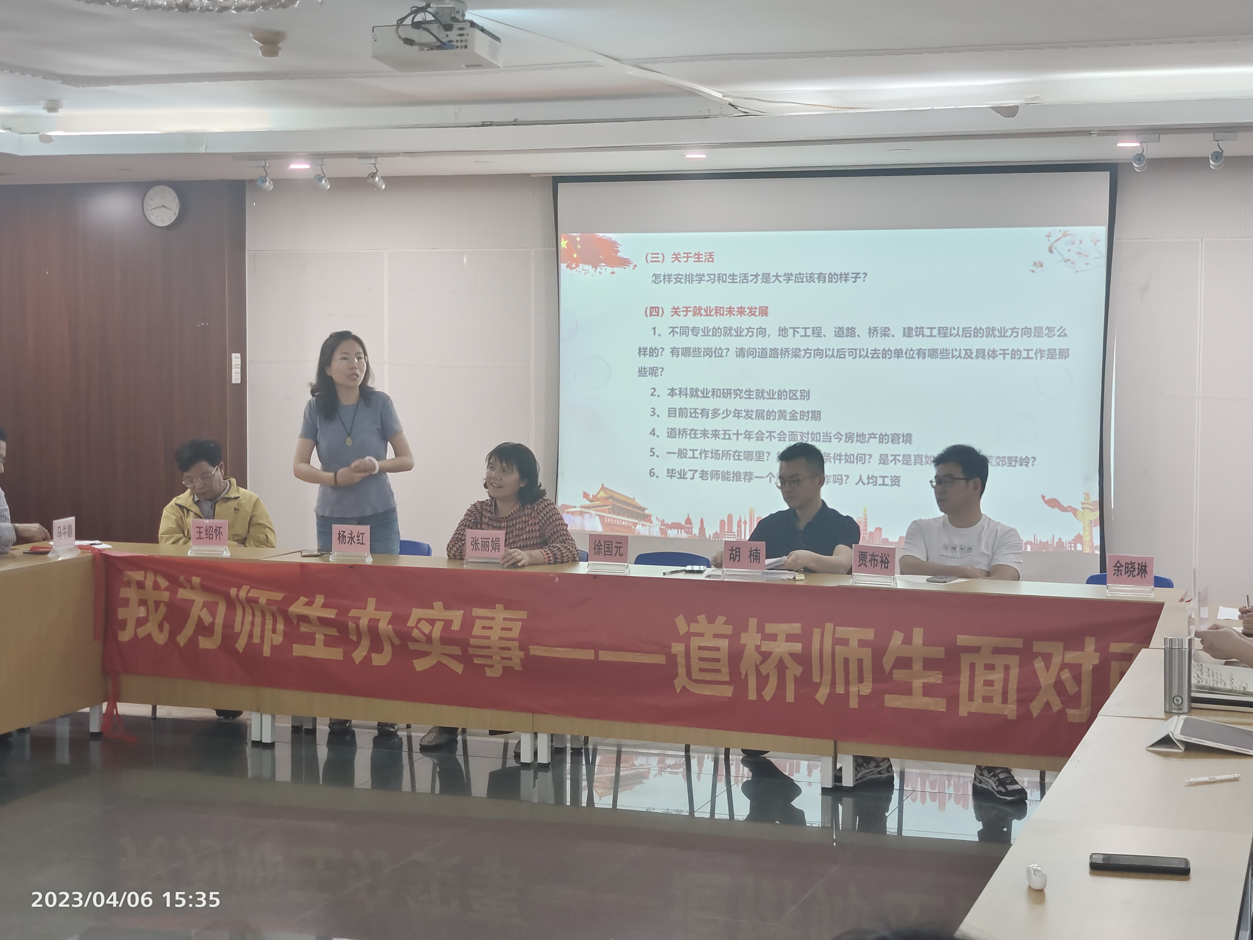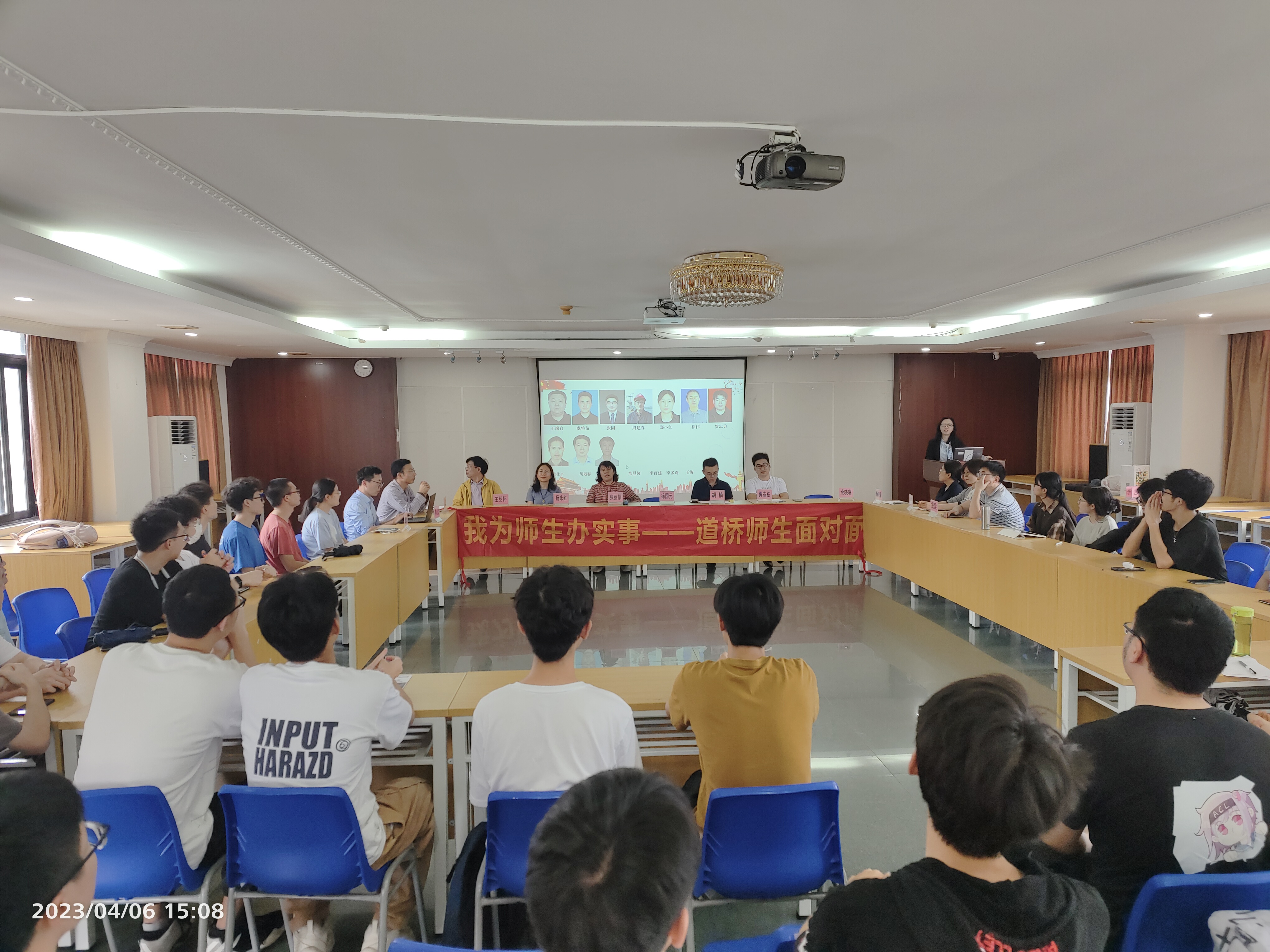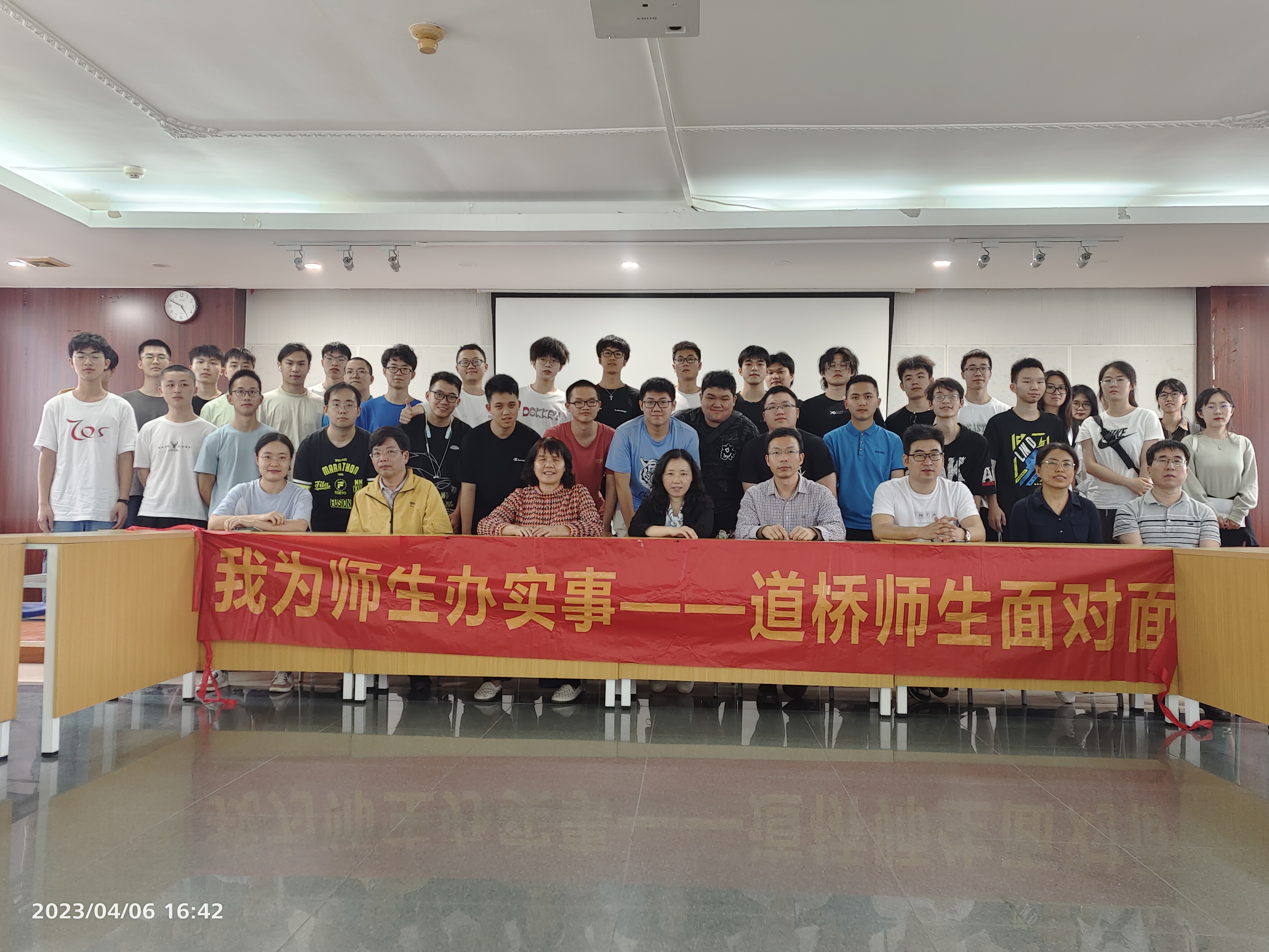 为深入学习贯彻党的二十大精神,进一步加强师生之间的沟通交流,倾听学生心声,2023年4月6日下午三点,土木与交通学院教工道桥党支部举办了以“铺未来之路,架希望之桥”为主题的师生面对面交流会。道桥党支部教师余晓琳、甄晓霞、张丽娟、贾布裕、胡楠、杨永红、王晓飞、马牛静、王绍怀、郑国梁、黎燕文、董尼娅12位党员同志和60多名21级土木专业本科生参加了座谈会。