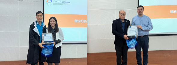 王展滔主席向学院赠送纪念品 谭邦董事向船海系赠送纪念品