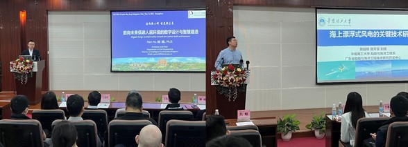 船舶与海洋工程系副主任刘鲲作了题为“海上漂浮式风电的关键技术研究”的报告,介绍了海上风电的政策背景、漂浮式风电的发展历程和面临的技术挑战。刘鲲老师提出,漂浮式风电是海上风资源开发走向深远海的必由之路,但环境条件恶劣是漂浮式风电设计中的难点。我院在漂浮式风电的损伤检测、修复智能作业装备、高性能海上风电运维船等方面开展了系列研究,助力漂浮式风电的落地应用。