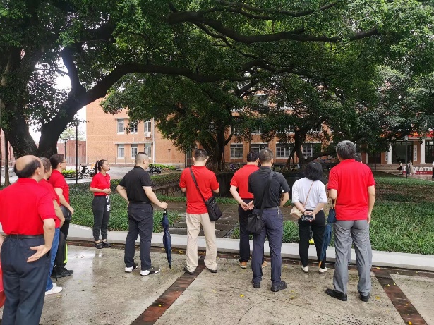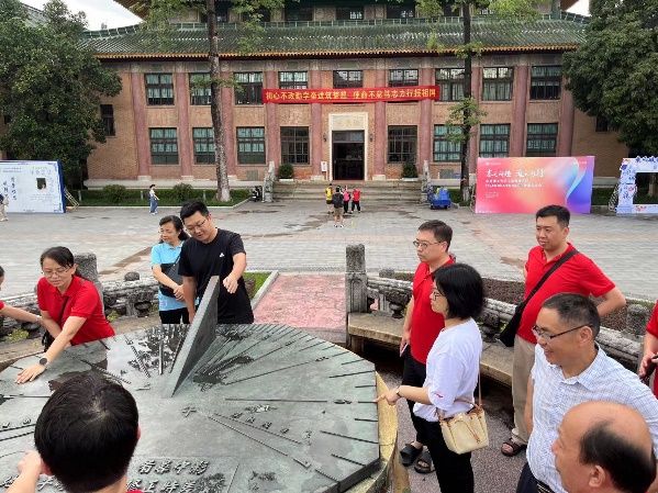 2023年7月1日下午,交通运输工程党支部举行“追忆红色甲工”庆祝中国共产党成立102周年主题党日活动。交通运输工程党支部邀请了学院追寻讲解队的两名讲解员为支部党员介绍校内的红色景点,具体学习路线为:老体育馆(东区游泳馆)—中山像—泳池铭—百步梯—日晷仪。