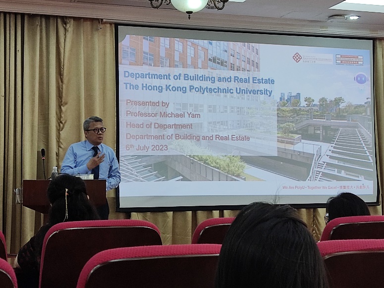 任志浩教授从师资团队、科研成果以及教学情况三方面对香港理工大学建筑及房地产系做了详细的介绍,同时他还展示了计算机听觉、3D打印等智能建筑领域的典型研究项目。