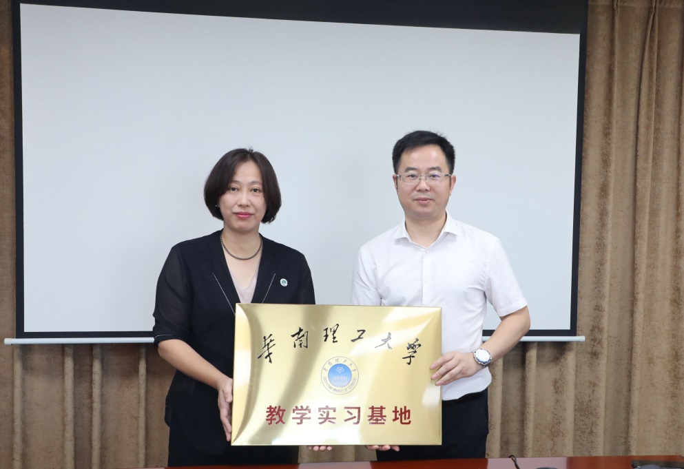 座谈会期间,张蔚洁与周铁峰作为校企代表共同为“华南理工大学教学实习基地”揭牌,旨在深化产教融合、校企合作,推动人才培养。
