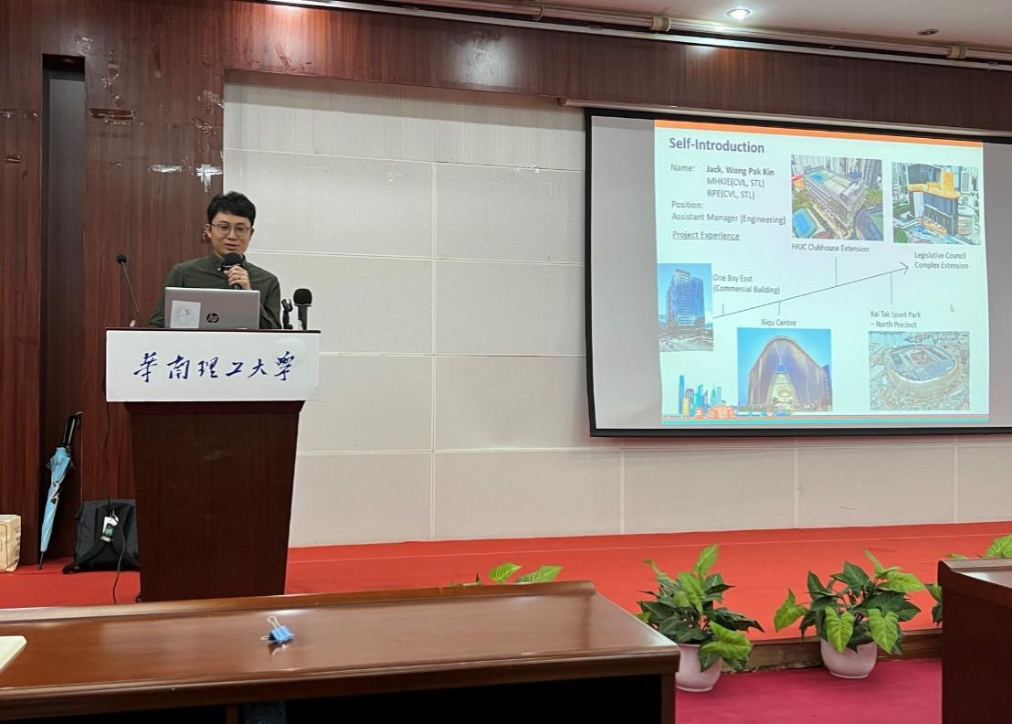 “智启砼心”之粤港澳大湾区就业指导系列讲座第一期的嘉宾来自香港知名建筑公司之一,协兴建筑集团(Hip Hing)。讲座伊始,土木工程系主任胡楠对协兴建筑集团一行的到来表示热烈欢迎,并通过分享今年七月组织本系学生前往工程实践的见闻,阐述了香港建造业的最新发展趋势和新兴科技应用,以及当前香港缺乏大量土建人才的现况,鼓励学生在大湾区建设持续提速的背景下,抓住香港建造业黄金机遇期。