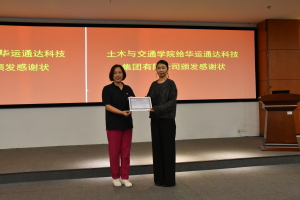 座谈会上,张蔚洁代表学院向华运通达科技集团有限公司颁发感谢状,感谢该公司在学院承办粤港澳大湾区“未之星”训练营活动期间给予的鼎力支持。