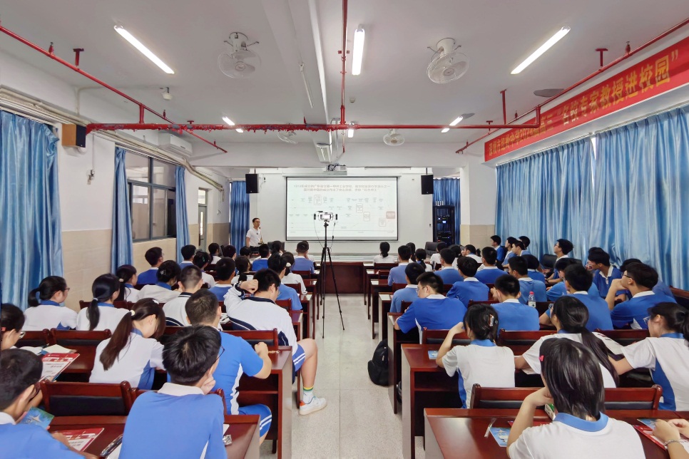 10月16日,学校深圳招生组组长、学院党委副书记王磊在深圳红岭中学宣讲学校综合评价招生政策。招生宣讲会以线上线下结合的方式进行,约5000名师生家长聆听了宣讲会。