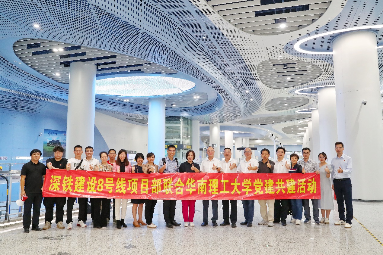 为充分发挥党建引领作用,构建校企“资源共享、共谋发展”的党建工作新格局,11月4日,土木与交通学院联合深圳地铁建设集团8号线项目部开展党建共建活动。学院党委书记张蔚洁,学校党委组织部副部长(挂职)、院长助理马莹莹,深圳地铁建设集团党委副书记吕炎,深圳地铁8号线项目部党支部书记、总经理王珩,深铁建设前期工作部支部书记、总经理、学院交通工程2000届校友叶斌出席活动,学院结构党支部、岩土党支部、交通运输工程党支部、院办党支部成员及相关特邀教师参加活动。