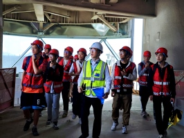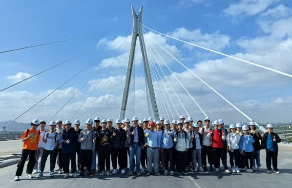 在城市交通规划蓝图中,广州充分发挥交通先行的引导带动作用,推动广州与周边城市交通基础设施立体成网,助力粤港澳大湾区互联互通。由道路工程系主任张园老师和土木工程系黎燕文老师带队,工科试验班的42名学生前往南沙,在现场项目经理带领下参观了洪奇门特大桥。参观途中,项目经理为师生们讲解桥梁建造概况,例如埋弧焊焊接,材料运输,拉索的安装方法保护,温度对于施工作业的影响钢箱梁检测,以及利用传感器对大桥的定期检查等,同学们对桥梁建造有了更深入的了解。项目经理还介绍了土木工程专业道路与桥梁方向的基本情况及交通土建就业情况,大家对于专业方向有了更深入、更切合实际的了解,也对自己未来的职业发展方向有了一些轮廓。中铁集团的项目经理还通过动画短片,介绍了整座特大桥建造相关的信息以及建造特大桥的重大意义。随后,同学们参观了工人培训中心,见识到在高科技以及新式培训方法的加持下工人的安全保障以及专业能力持续在提升,感受到现实工地的环境在不断地向好向善,新时代的建设环境将更加智能、更加完善。同学们此行对桥梁与道路工程有了更深入的了解,见识了我国迈向交通强国的大好前景,对同学们的未来规划具有重要意义,纷纷表示:只有积极主动地研究创新的科技,不断地学习知识,才可以更从容地接受科技革命带来的机遇与挑战。