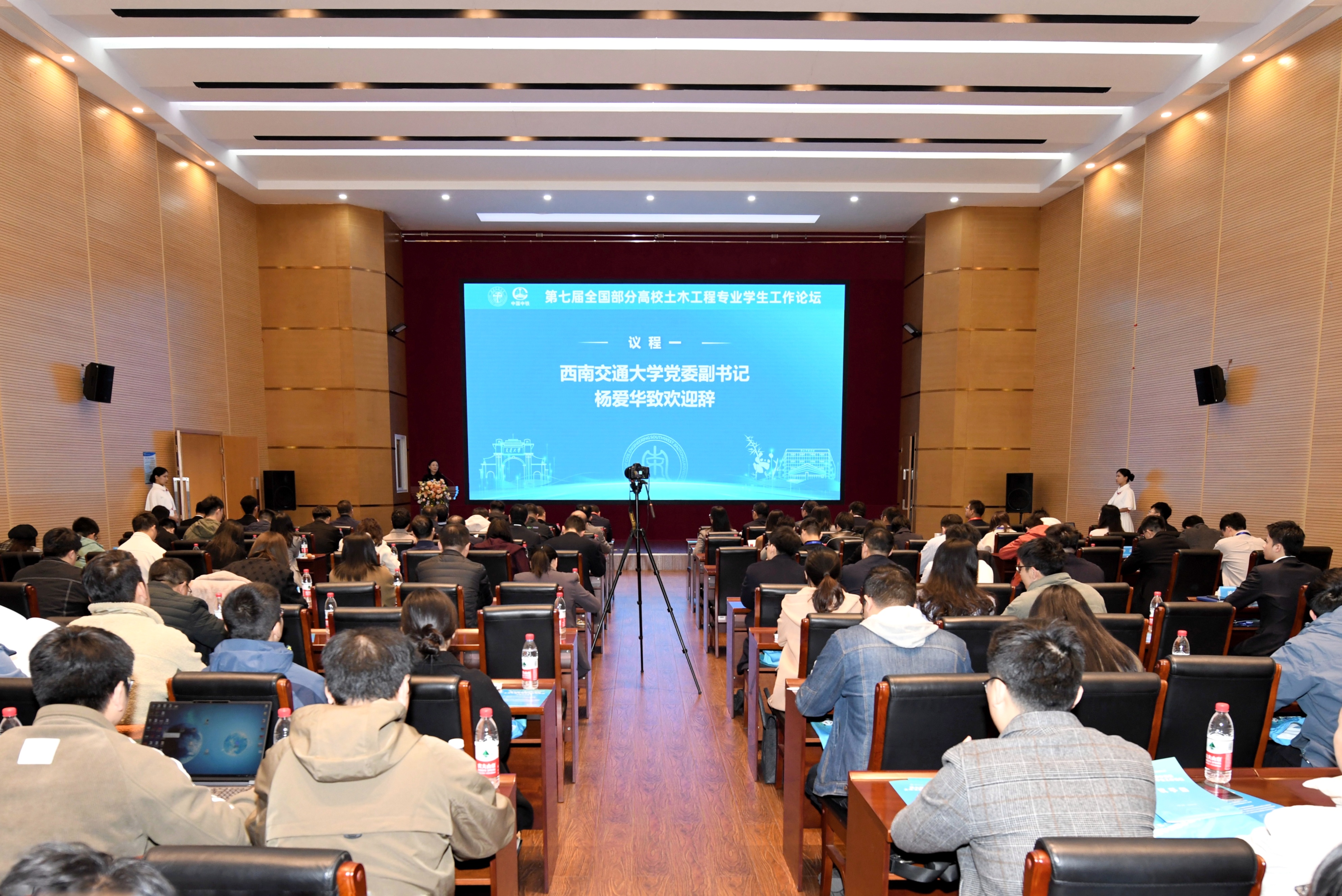 11月16日至18日,第七届全国部分高校土木工程专业学生工作论坛在西南交通大学成功举办。来自同济大学、东南大学、浙江大学、哈尔滨工业大学、华南理工大学等二十一所高校土木工程有关学院的学生工作者围绕论坛主题——“以中国式现代化引领新时代土木工程专业大学生思想政治教育工作创新发展”进行了研讨交流。我院学生工作团队代表在论坛上作了题为《凝练育人“砼”文化 培养新时代卓越工程师》的主题报告。