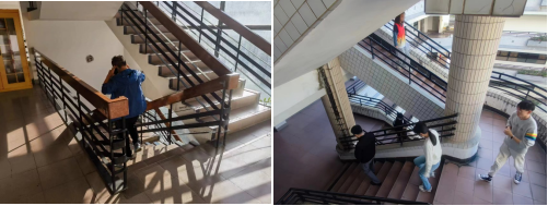 实验室安全工作会议结束后,学院于交通大楼进行了消防疏散与灭火演练。演练警报声响起后,在各楼层疏散员的带领下,交通大楼全体师生弯腰低姿,捂住口鼻,沿着楼梯快速有序撤离到楼宇外的安全疏散区。