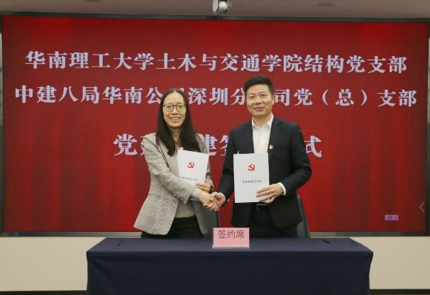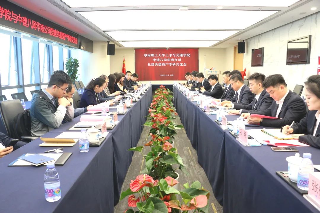 12月7日下午,华南理工大学土木与交通学院、中建八局华南公司在深圳举行党建共建暨产学研交流会。学院党委书记张蔚洁,中建八局华南公司党委副书记、工会主席孙建文,党委委员、总工程师蔡庆军,深圳分公司党总支书记、总经理杨文军,党总支副书记、工会主席冼俊岳等出席活动。