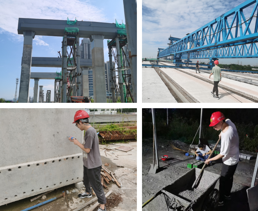 东晓南高速公路是广东省内首个大规模采用预制装配化技术施工的市政桥梁工程,在这里,同学们学习了应用数字模拟技术不断优化钢箱梁吊装的步骤和工艺,领略了数智技术引领桥梁建设发展的魅力。此外,同学们还参与了混凝土现场检测和强度试验工作。