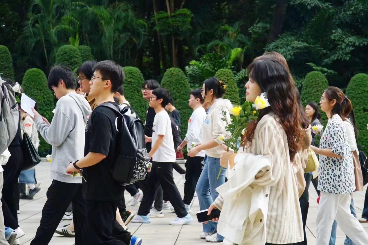 在纪念碑前,师生们列队肃立,向广州起义中牺牲的烈士们默哀。默哀毕,师生们怀着深切缅怀和崇高敬意,向革命烈士敬献鲜花,并缓步绕行,瞻仰纪念碑。随后,辅导员带领全体党员重温入党誓词。新时代青年必将稳稳接过革命先烈们的接力棒,薪火相传,以满腔热血投身到以中国式现代化实现中华民族伟大复兴的进程中。