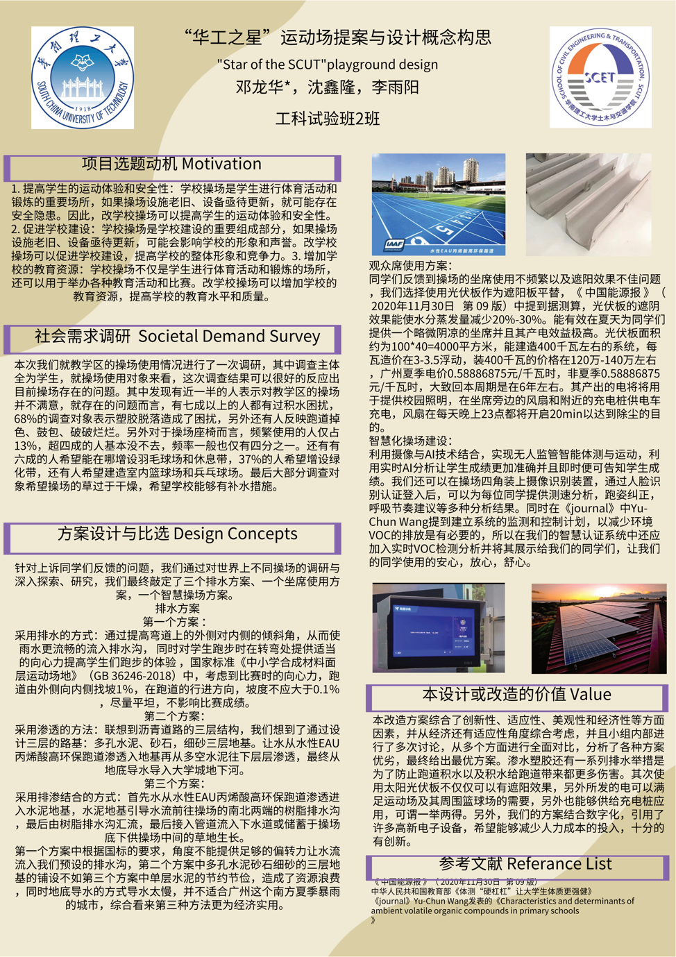 本次海报展最终评选出七个最佳团队奖和四个最佳人气奖(详见附录)。部分获奖团队也针对这一全新课程改革发表了自己的看法。工科三班石紫漩表示,“此次海报评比活动不仅为我们提供了创新和自我展示的平台,也让我对土木工程专业和数字建造的相关技术有了更深层次的认知。我认识到结构设计的严谨性等,也增强了创作和团队合作的能力,还获得了与他人交流想法和设计的机会,拓宽了思维并发现了自己的不足。” 工科二班王淇同学说,“期末和组员们聚在一起商讨着各种新奇的idea,再到实地建筑调研,这个项目让我们感受到了土木工程无穷的魅力。” 工科二班邓龙华补充到,“这次活动打破了同学们对土木工程概论课程的刻板印象,有效提升了学习素养并培养了创新思考的能力,大家发挥想象力,提出针对大学城的解决方案,是一次十分成功的改革。” 工科七班汪柏岑同学指出,“海报展示是一种很新的交作业方式,让我们很有动力去主动学习选题的知识并且展示出来!”