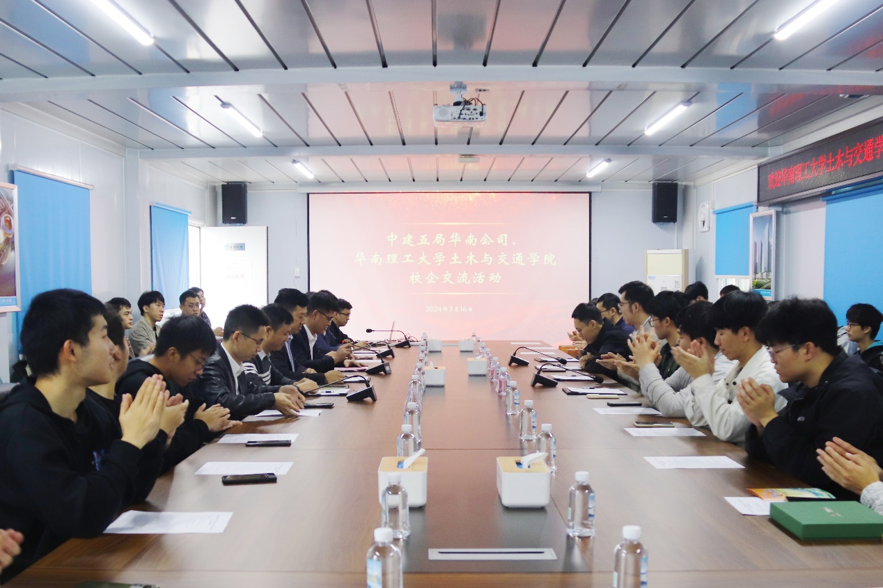 3月16日,中建五局华南公司、华南理工大学土木与交通学院校企交流活动在广州白鹅潭项目顺利举行。中建五局华南公司人力资源部(干部人事部)经理杨思,中建五局华南公司广州分公司党委副书记文平,华南理工大学土木与交通学院党委副书记王磊,辅导员、学院团委书记连维越,辅导员苏图,学院“青马工程”培训班学员等参加活动。