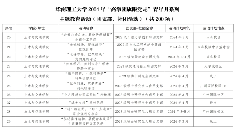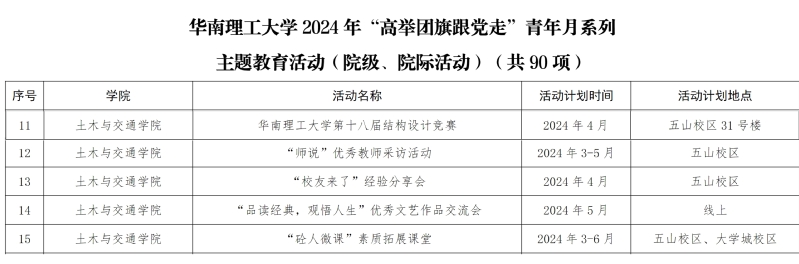 1.华南理工大学2024年“高举团旗跟党走”青年月校级立项活动名单