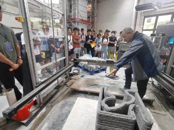 7月8日上午,师生一行在香港理工大学参观了工业中心、土木系结构实验室,并与该校师生围绕着3D打印技术展开了深度的探索与讨论。刘思威助理教授代表港理工土木与环境工程系介绍了理大的研究生项目,并详细介绍了他所指导的课题组近期完成的一座3D打印金属结构,不但为同学们展示了土木工程发展的新方向,也让同学们体会到如何在科研中攻克难关的过程。在工业中心,研究人员为同学们展示了混凝土3D打印设备,介绍了改变未来建筑施工方式的可能性和对城市节能减排的潜在贡献。在结构实验室中,庞大且先进的实验设备与创新性的玻璃纤维替代钢筋的实验带领学子感受前沿的土木科技。