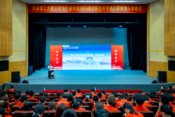 张蔚洁书记以《逐梦华园 砼向未来 书写青春新篇章》为题,紧密结合党的二十届三中全会精神,深刻阐述了新质生产力发展与中国式现代化建设的内在联系,生动描绘了学校如何在新时代的浪潮中,为国家与区域新质生产力发展“蓄势赋能”的壮丽图景。张书记还详细介绍了学院的学科优势、卓越师资、先进科研平台及重大工程应用成果,激励新生们要勇于担当,敢于创新,以实际行动为国家的现代化建设贡献力量。