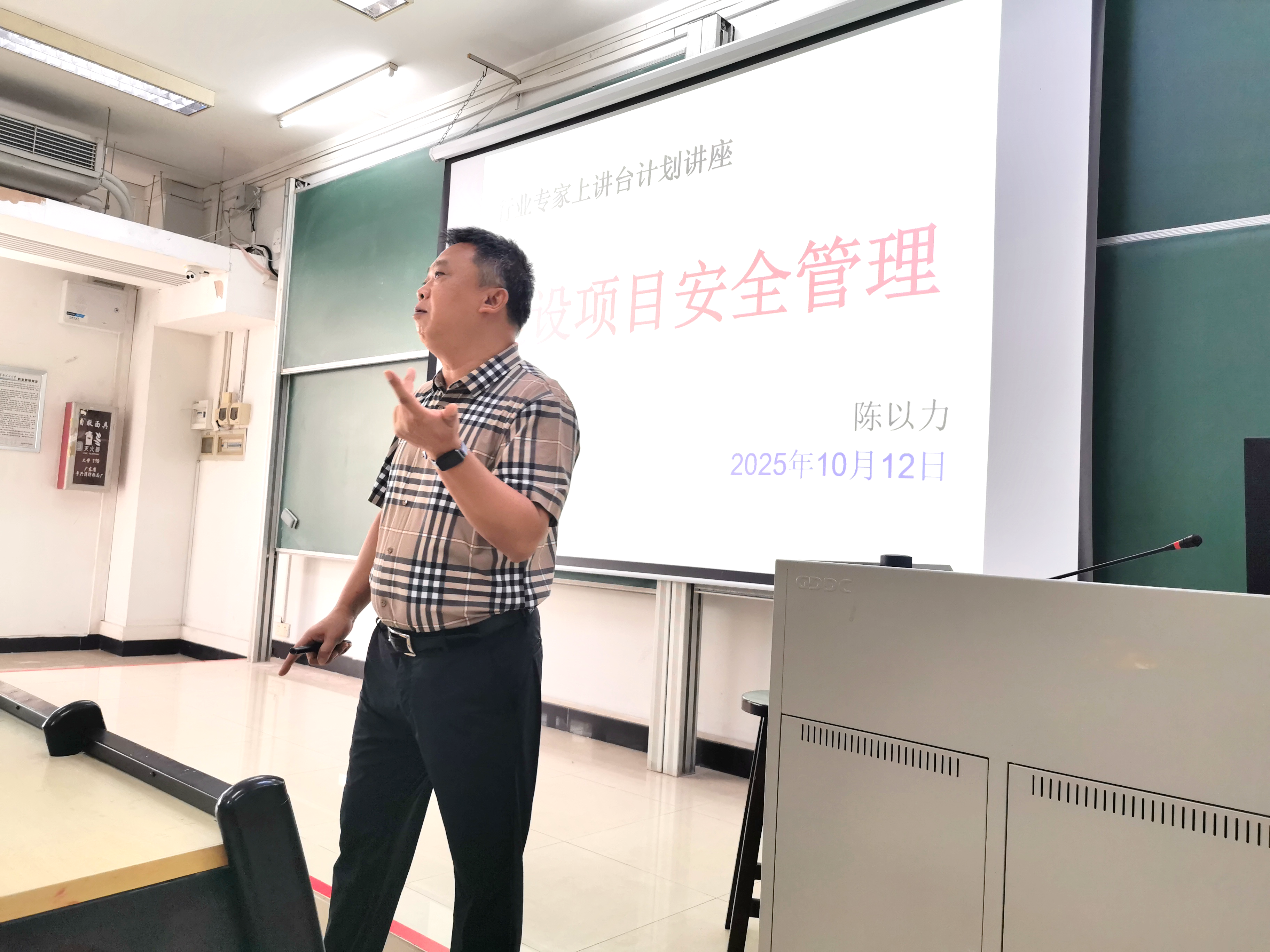 2025年10月12日上午,番禺区住房和城乡建设局原副局长、高级工程师陈以力走进我院,为师生们讲授以《建设项目安全生产管理》为主题的学术报告。本次讲座由工程管理系张扬冰副教授主持,吸引了近百名师生到场。