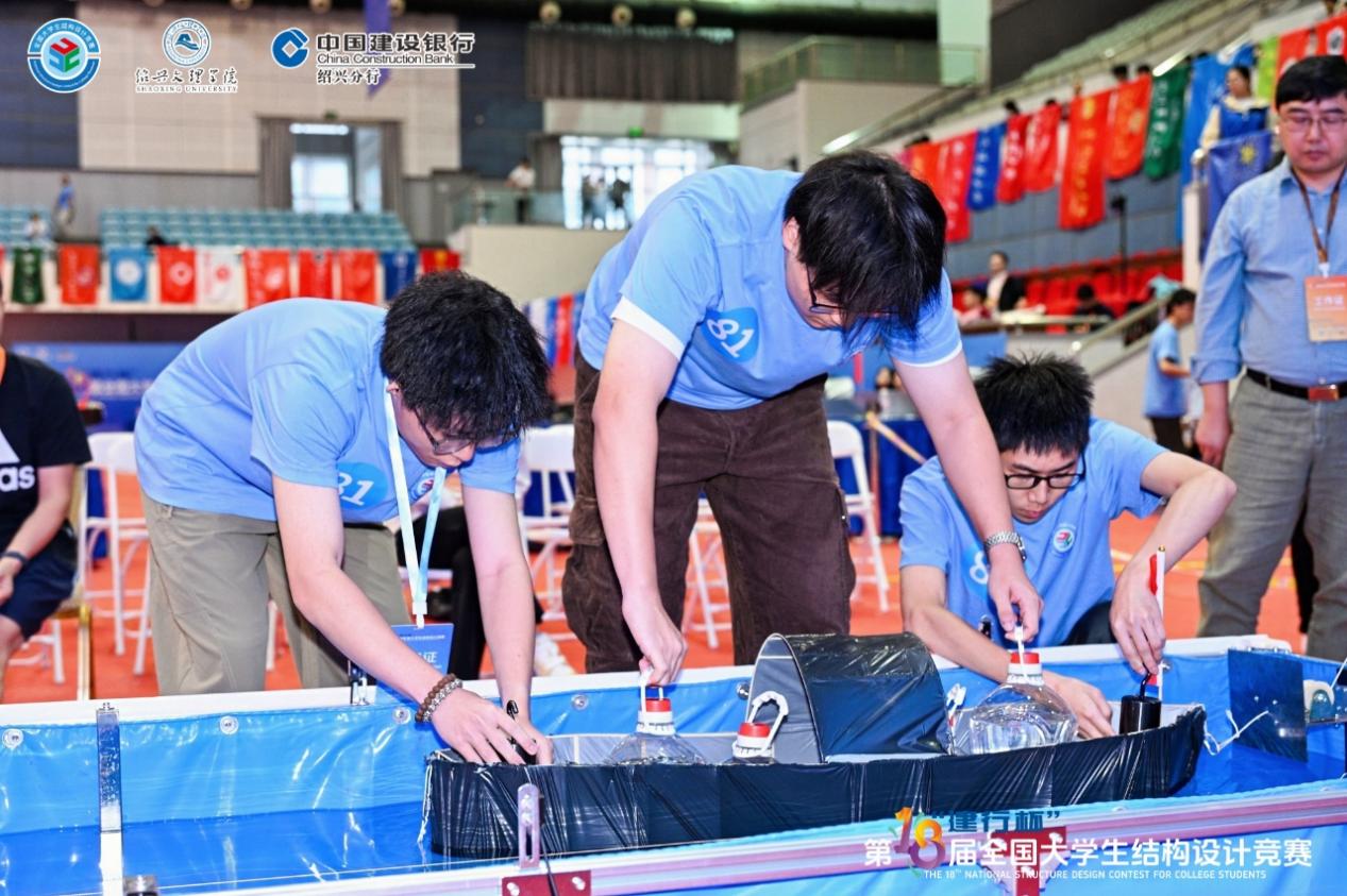 我校的参赛作品《锦鲤》由土木与交通学院2023级土木工程地下结构班李俊彦、黄春杨和2023级土木工程智能建造班黄昭鹏设计并制作,由土木工程系赵俊贤、胡方鑫、陈庆军等老师指导,学院团委书记连维越担任领队。前期备赛环节,我院参赛队员稳扎稳打、齐心合力,不断试验、修改和优化选型,摸索出合理的设计方案。在决赛现场,参赛团队在经过15个小时的现场制作、专家评审、论述答辩等环节后,最终荣获全国二等奖。