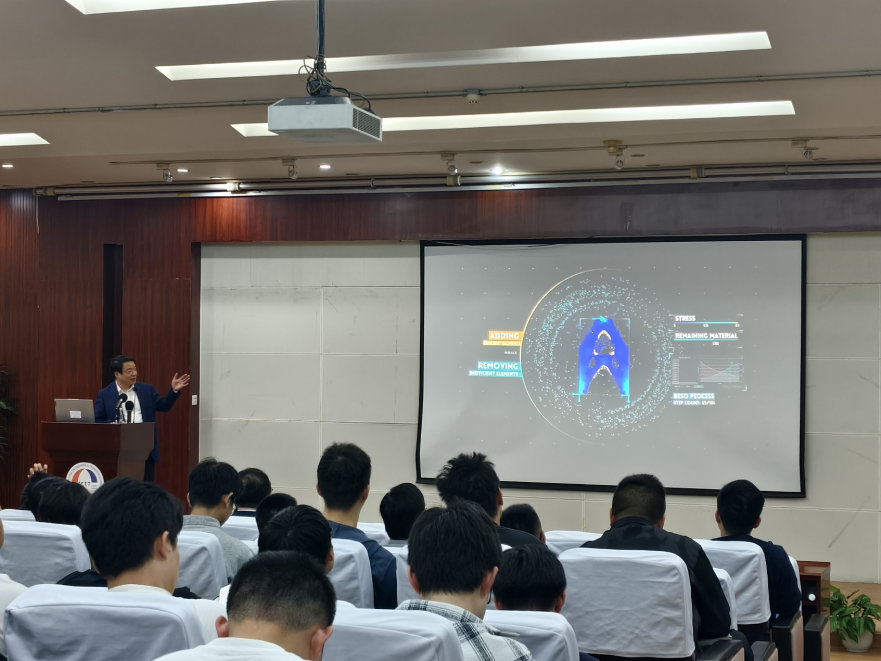 学术报告会环节由土木与交通学院院长姚小虎教授主持,姚小虎院长向与会师生介绍了谢亿民院士的科研经历和学术成就,希望我院师生向前辈学习,在科研探索中坚持初心,守正创新。谢亿民院士在报告中针对其在广义拓扑优化方法方面的最新研究成果,给土木与交通学院师生做了一次深入浅出、生动精彩的学术报告,通过与参会师生的互动交流,鼓励青年学子要敢于挑战、勇于创新,不断提升自我,为我国科技发展与社会进步做出积极贡献。