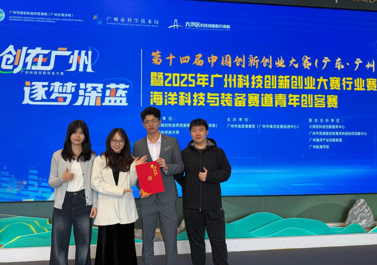 12月23日上午,2025年广州市科技创新创业大赛行业赛海洋科技与装备赛道青年创客赛决赛圆满落幕。由华南理工大学土木与交通学院周斌珍教授指导,牛奇奔、洪妙雯、蓝妮、肖义组成的“蓝海聚能舰队”凭借创新作品脱颖而出,勇夺决赛一等奖,并斩获奖金两万元,为学校和学院赢得荣誉。