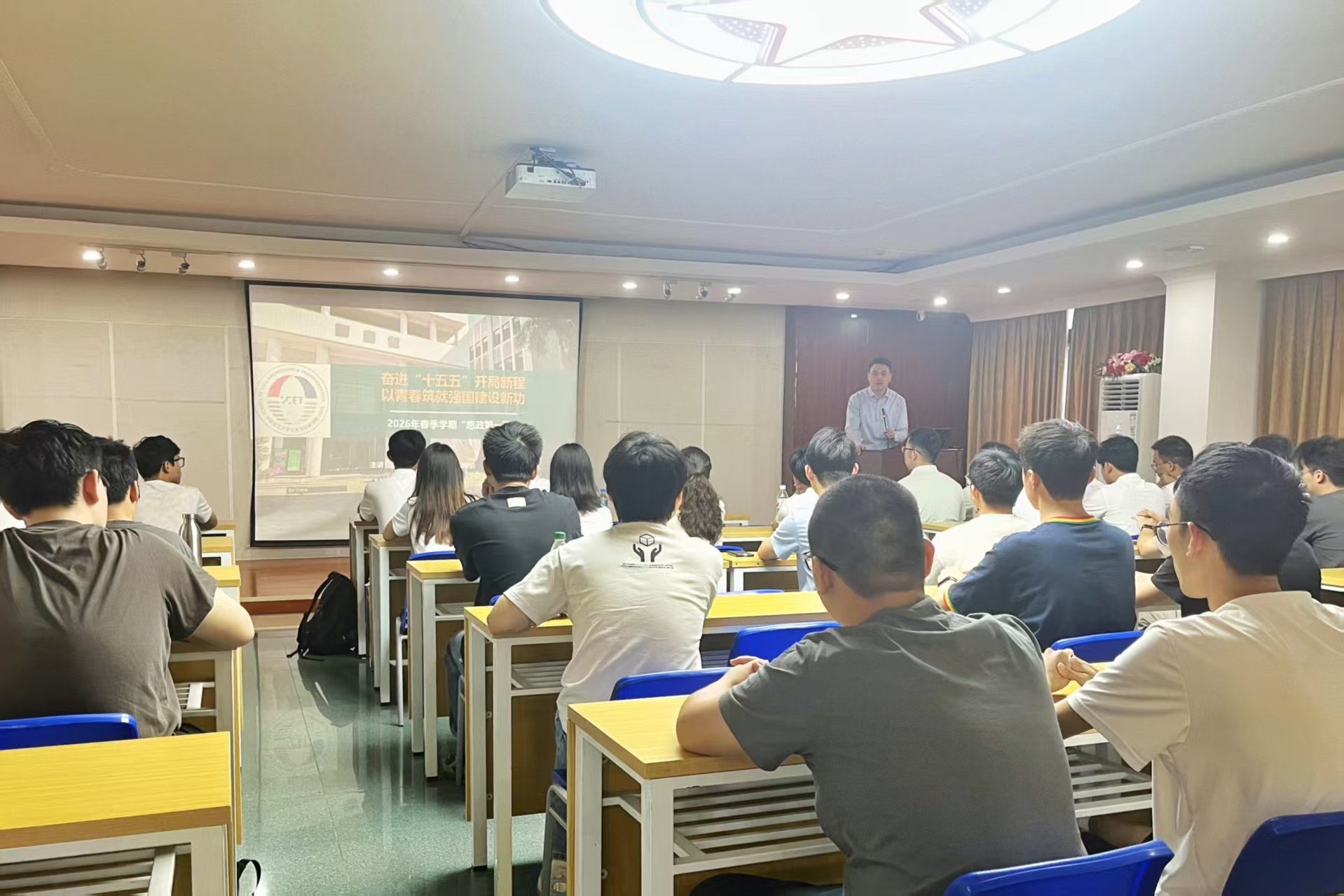 3月29日下午,土木与交通学院院长虞将苗教授以《奋进“十五五”开局新程 以青春筑就强国建设新功》为题,为学院学生讲授了2026年春季学期“思政第一课”,土木与交通学院“青马工程”班学员、各年级学生代表共70余人聆听课程。