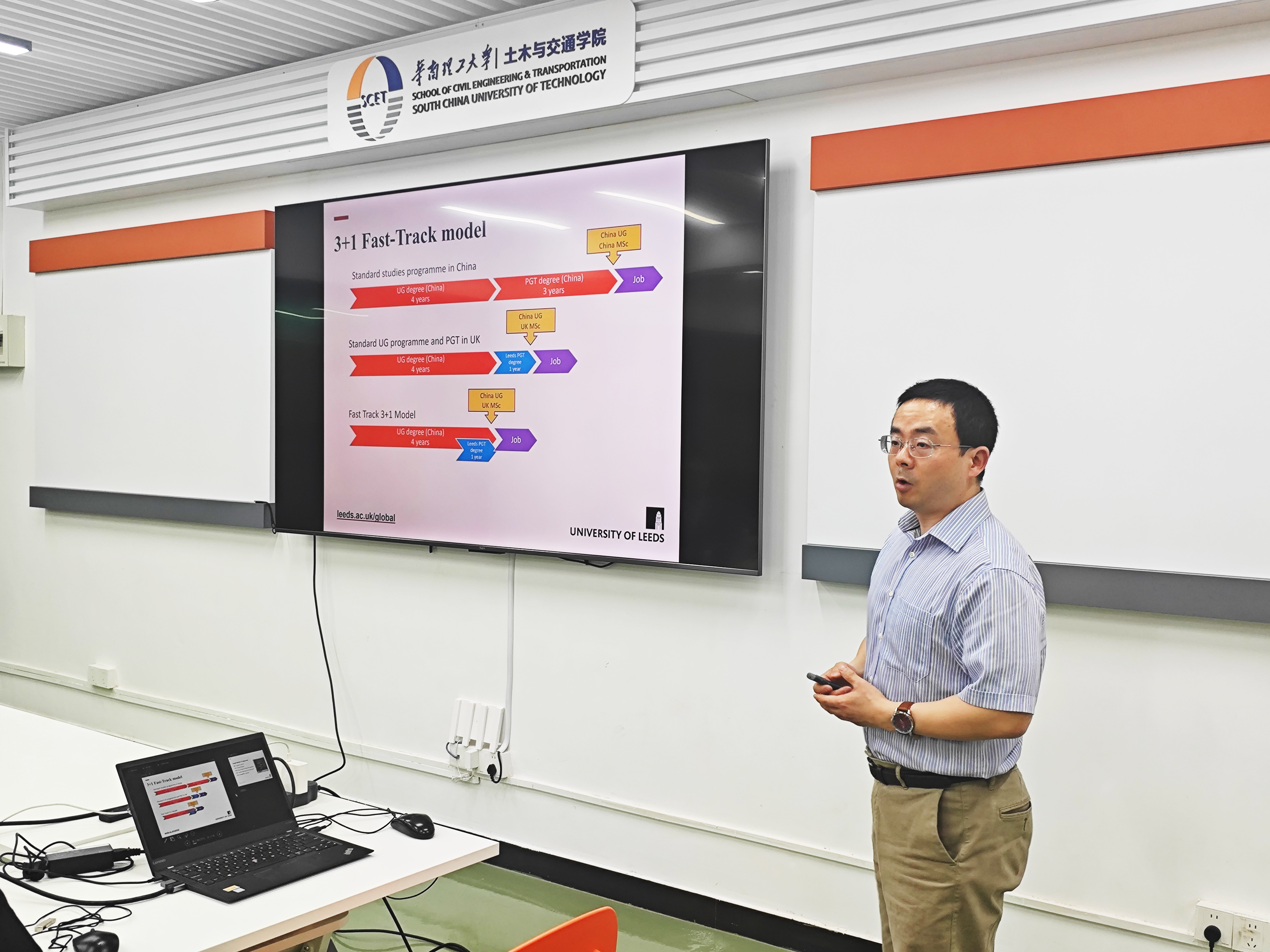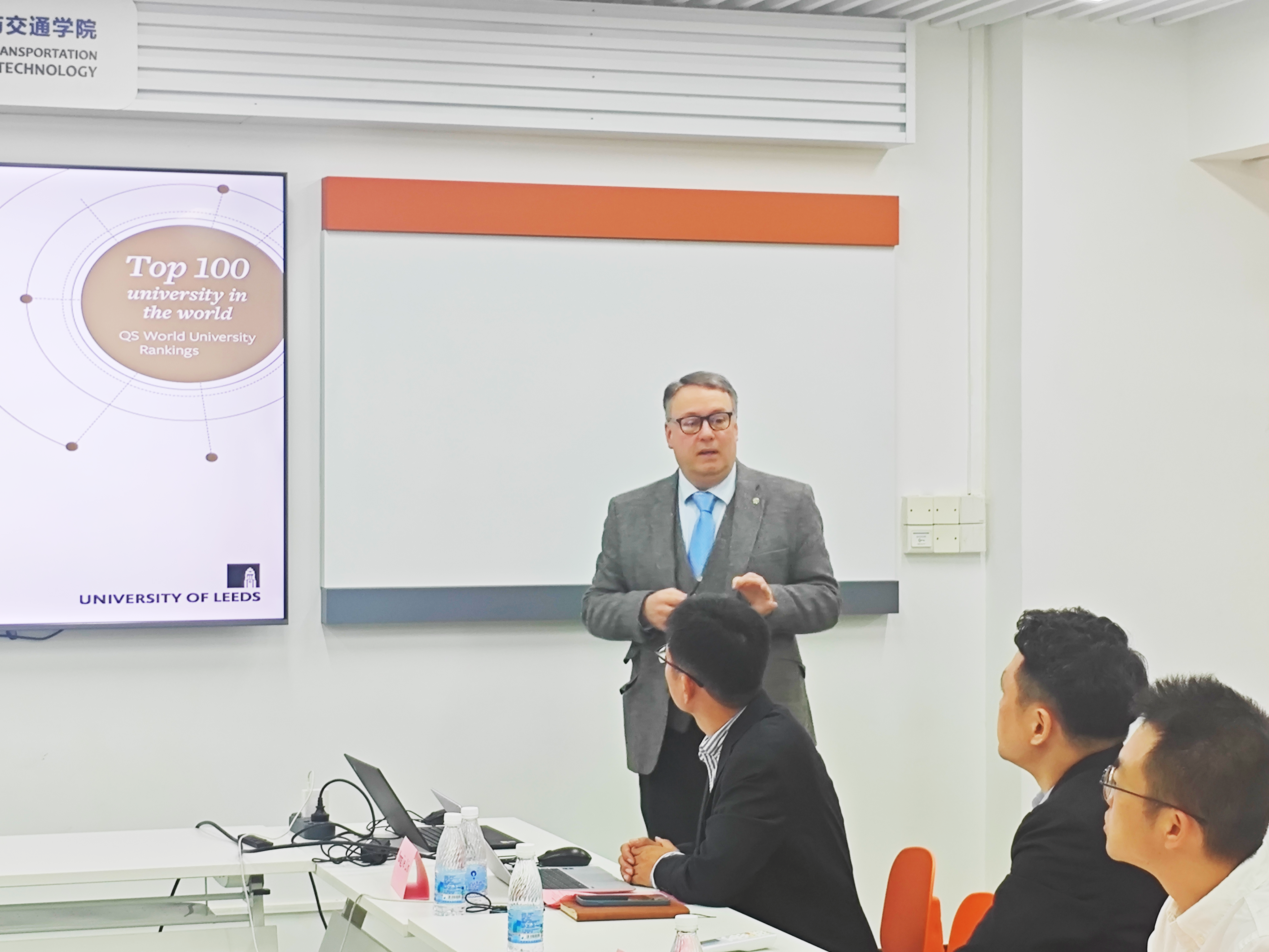 Alan Haywood教授详细介绍了利兹大学的全球影响力、学科排名、学术资源以及环境学部的整体概况。Yue Huang教授聚焦双方合作契机,重点介绍了利兹大学交通学院“3+1”本硕联合培养项目,就专业设置、申请要求、学费政策、课程体系等关键信息作了详细说明。