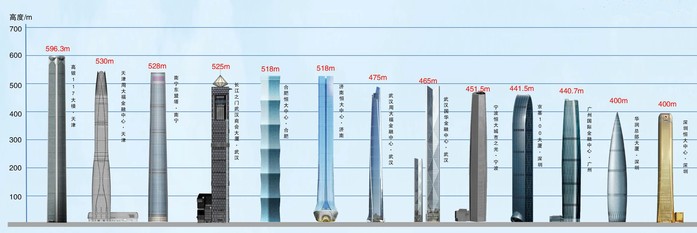 Fig.1 Wind engineering consulting projects in supertall buildings with height over 400m
