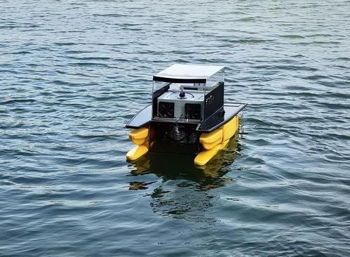 On-line floating platform for monitoring river/reservoir cross-section velocity and water quality