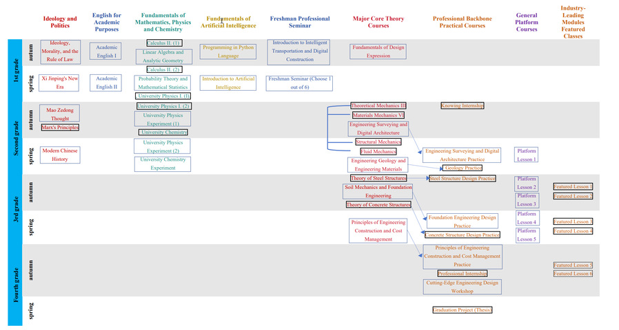 Introduction to IntelligentTransportation and Digital Construction, Understanding Internship, ProfessionalInternship, Cutting-edge Engineering Design Workshop, Graduation Project