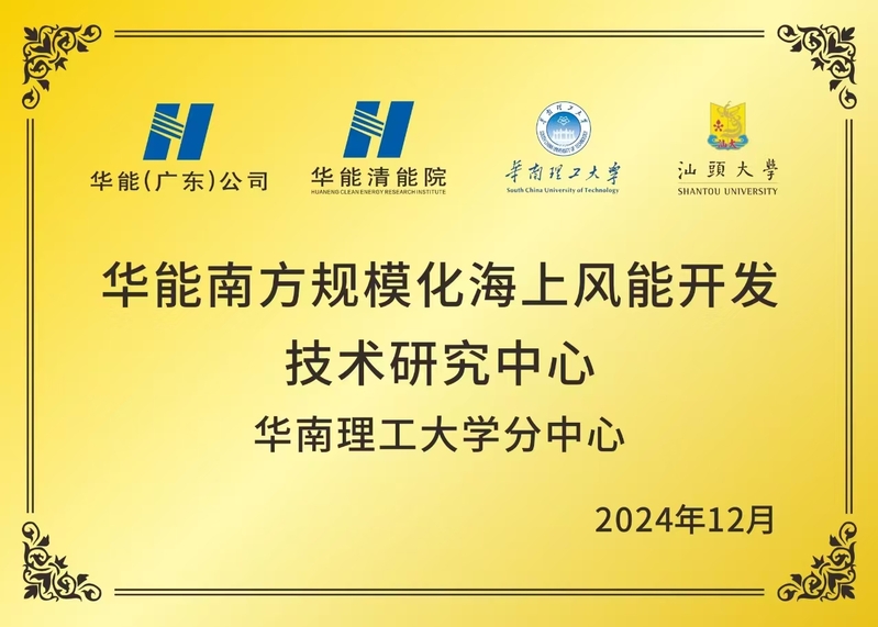 The China Huaneng Southern Large-Scale Offshore Wind Power Technology Research Center and its South China University of Technology (SCUT) Sub-Center were established through the joint support of four key partners: China Huaneng (Guangdong) Company, Huaneng Clean Energy Research Institute (CERI), South China University of Technology, and Shantou University. This collaborative platform is dedicated to advancing offshore wind power technologies and cultivating high-level professionals in this specialized field.