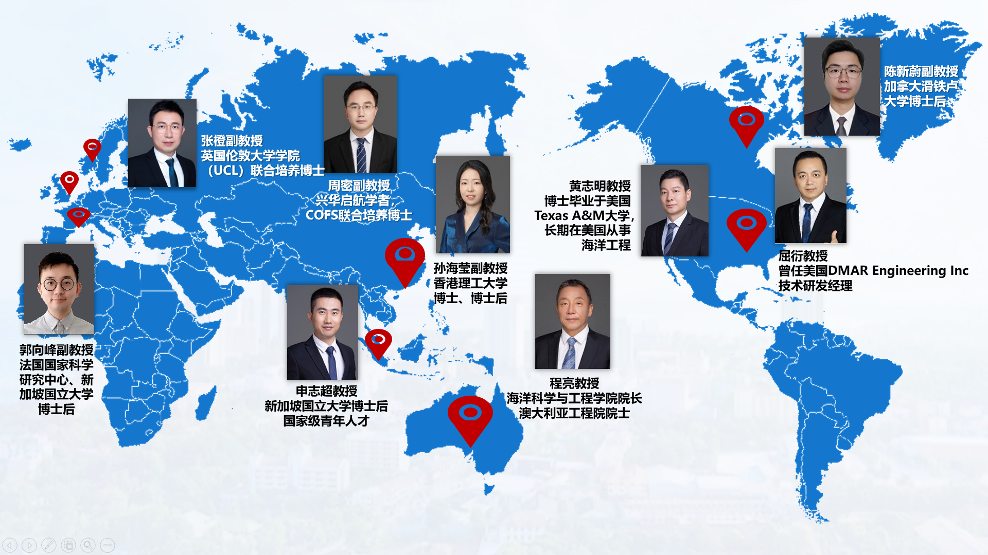 Professional backbone teachers have rich overseas research or teaching experience and have achieved international advanced achievements in related fields, which can effectively lead the construction of the intelligent ocean equipment profession and achieve the internationalization goals of research and teaching.