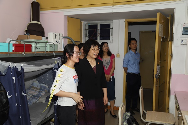 走访过程中,刘琪瑾副书记亲切询问了同学们在宿舍生活以及平时学习的情况。她表示,同学们的宿舍不仅干净整洁,有的宿舍还有“舍友评比榜”、每日小贴士等个性化元素,体现了大学生的多姿多彩的宿舍文化。对于这种积极向上、奋发有为的宿舍文化,她表示赞赏,并激励同学们和睦共处、相互学习、共同进步,变得更加优秀。
