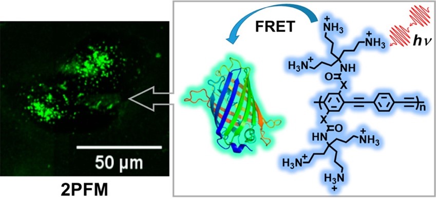 [4] Wang, S.; Li, Z.; Liu, X.; Phan, S.; Lv, F.; Belfield, K. D.; Wang, S.; Schanze, K. S. “Two-Photon Absorption of Cationic Conjugated Polyelectrolytes: Effects of Aggregation and Application to 2-Photon-Sensitized Fluorescence from Green Fluorescent Protein”, Chem. Mater. 2017, 29, 3295–3303, DOI: 10.1021/acs.chemmater.7b