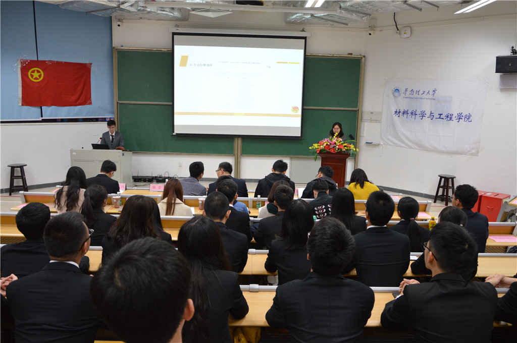 3月8日晚,共青团华南理工大学材料科学与工程学院第十二届全体委员会扩大会议如期于博学楼101教室召开。本次大会应到委员51名,实到委员48名,到场委员大于应到委员的五分之四。校团委书记孟勋老师,学院党委副书记彭树立老师以及各兄弟学院团委学生会负责人等莅临大会。
