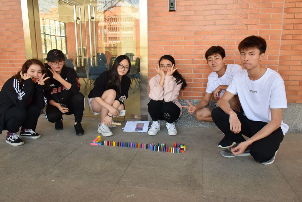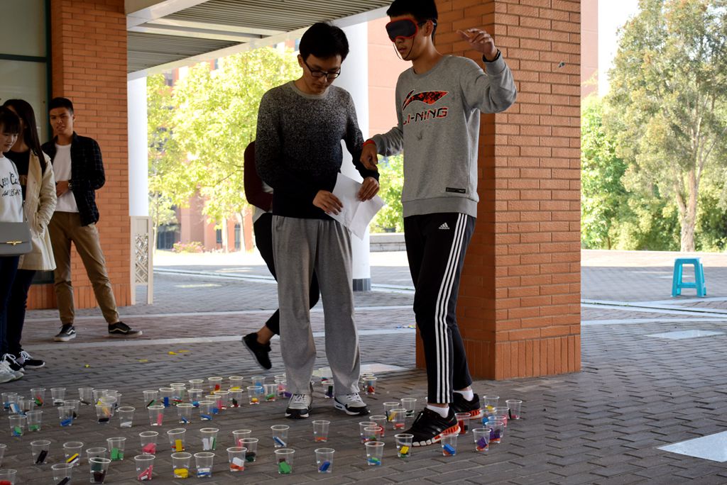 活动开始,游戏开始计时,大家先从篮球场上的工作人员手中分别拿到各个小组的下一个游戏地点的线索,每个小组的路线不同,则拿到的线索不同。线索的方式多种,有的给几个下一地点特征的关键词,有的则是利用大家的逻辑思维对所给数字进行推算,从而得出一个地点名称。共有四个游戏,分别是“最懂你意”、“正话反说”、“多米诺”、“漂洋过海来看你”,每个游戏都非常有意思,其中那个“多米诺”非常能考验游戏者的心理承受力和动手能力,游戏过程中笑声不断。
