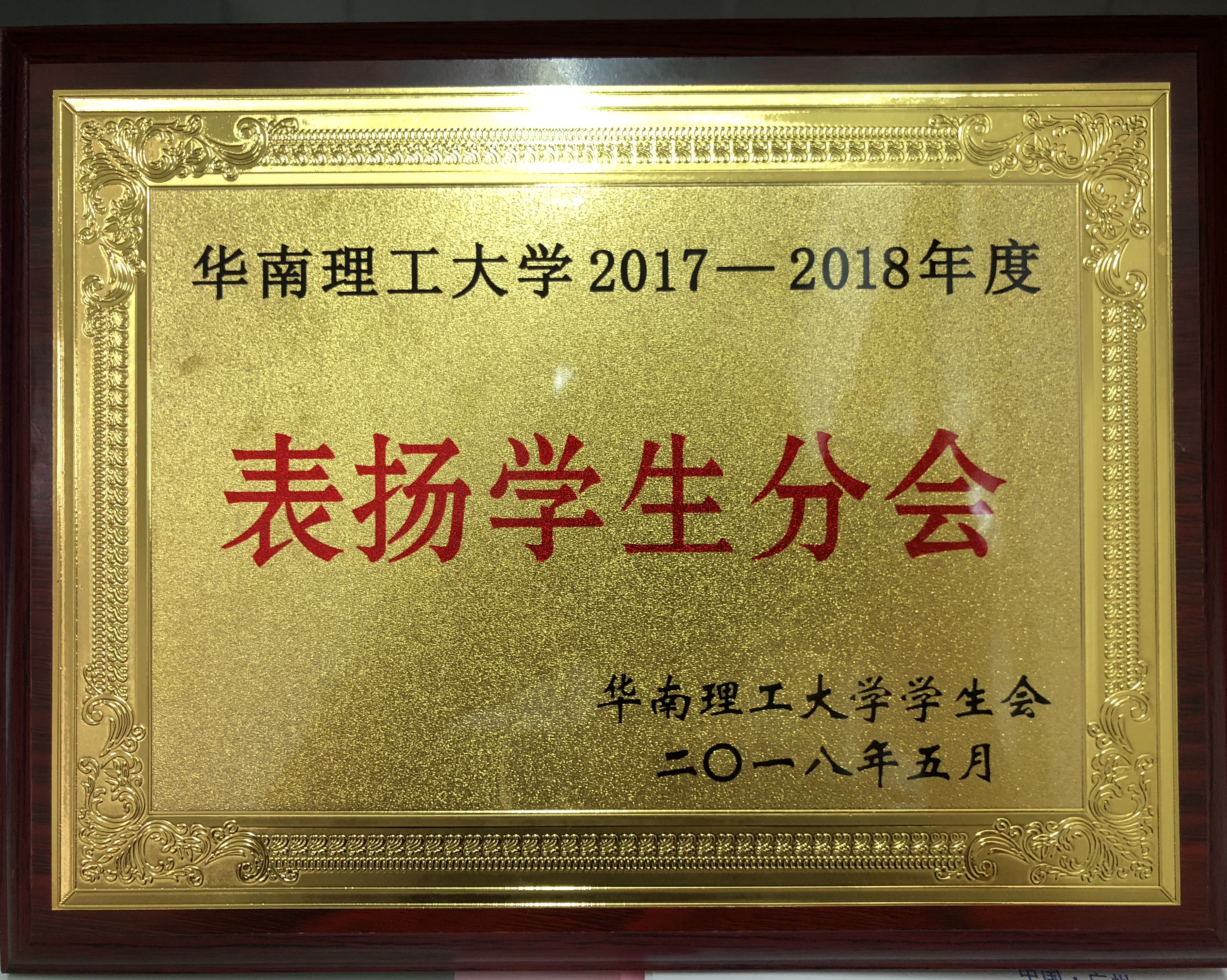 喜讯!我院学生会荣获“华南理工大学2017年度表扬学生分会”荣誉称号