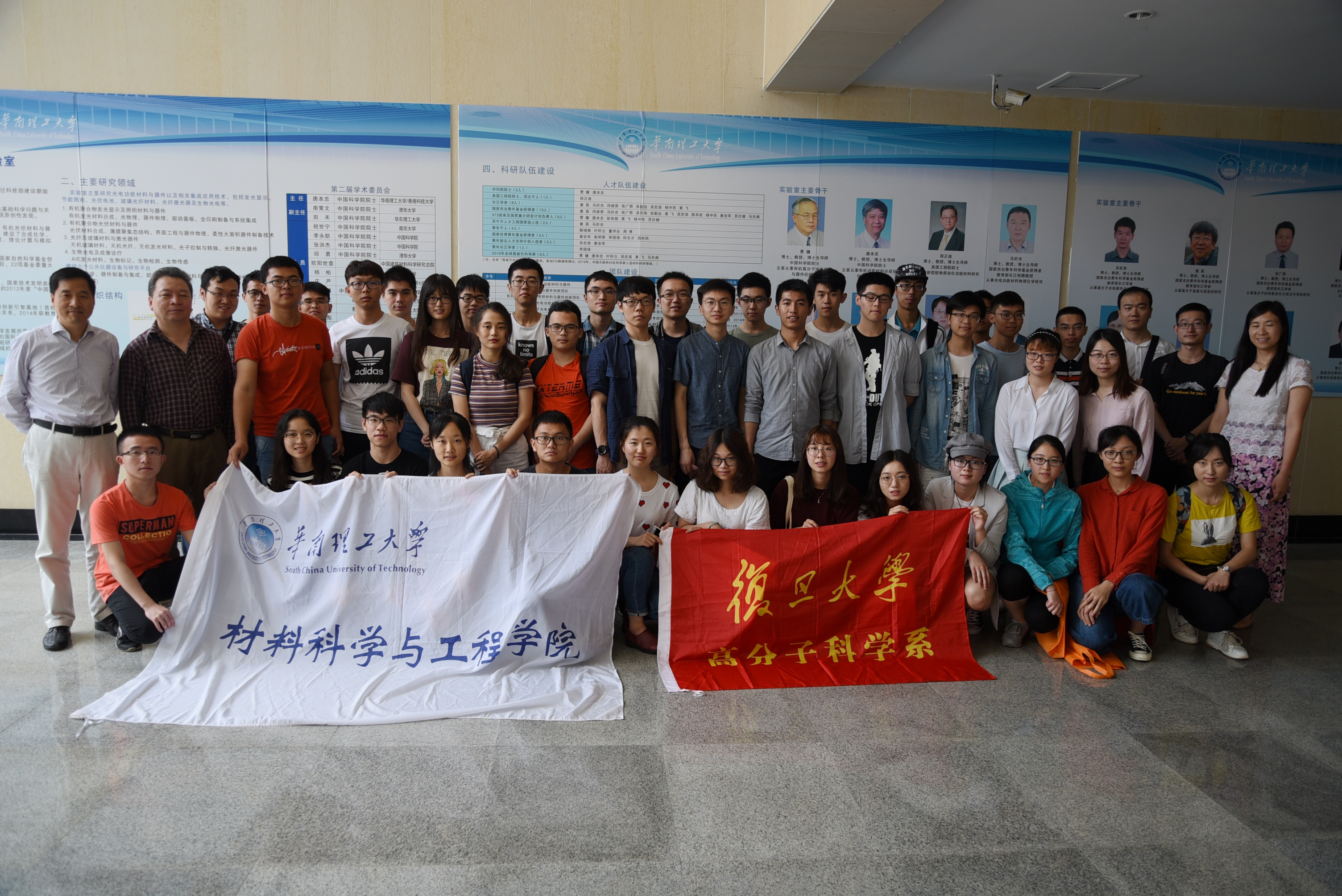 2018年5月13日,复旦大学高分子系师生一行来穗与华南理工大学材料科学与工程学院高分子材料与工程师生二十余人开展交流活动。复旦大学高分子系副主任何军坡老师,党委副书记王芳老师,2015级本科班辅导员李永婧老师,2016级本科班辅导员钟凯旋老师,以及华南理工大学高分子系副主任赵俊鹏老师,学院党委副书记彭树立老师,辅导员麦其鹏老师、李俭老师出席本次交流活动。