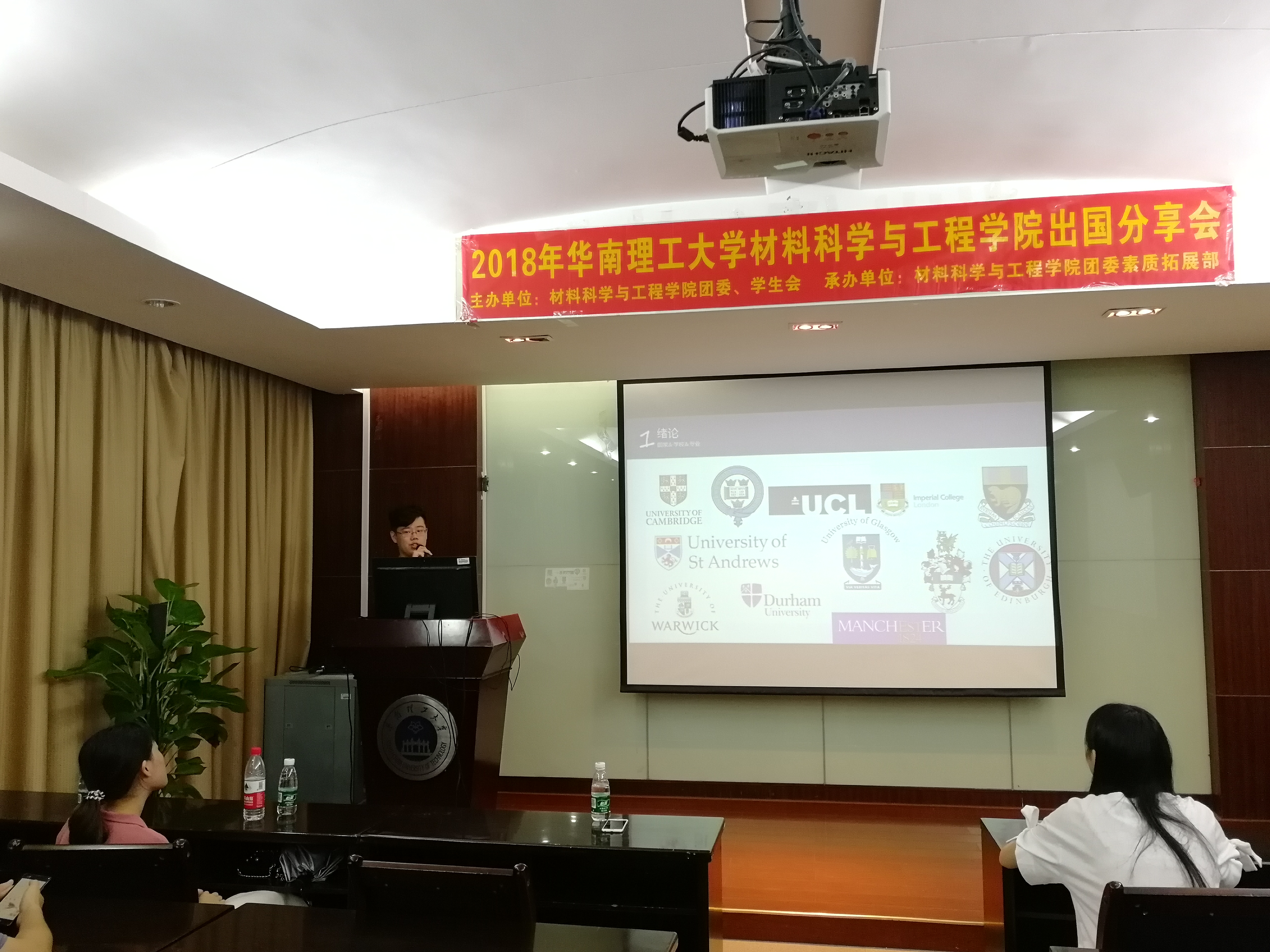 由材料学院团委学生会素质拓展部承办的出国经验分享会于6月1日晚14号楼205室如期举行。本次分享会有幸邀请到三位分别收到英国、日本与美国高校offer的优秀师兄师姐,分别是14光电的宋嘉良学长、黄瑞怡学姐与14高乙顾天一学长。虽然顾天一学长临时有事无法到场,内容由主持人代为讲解,是一个遗憾,但是学长学姐详细的攻略分享与周到的现场解答让在场的同学收获颇丰。