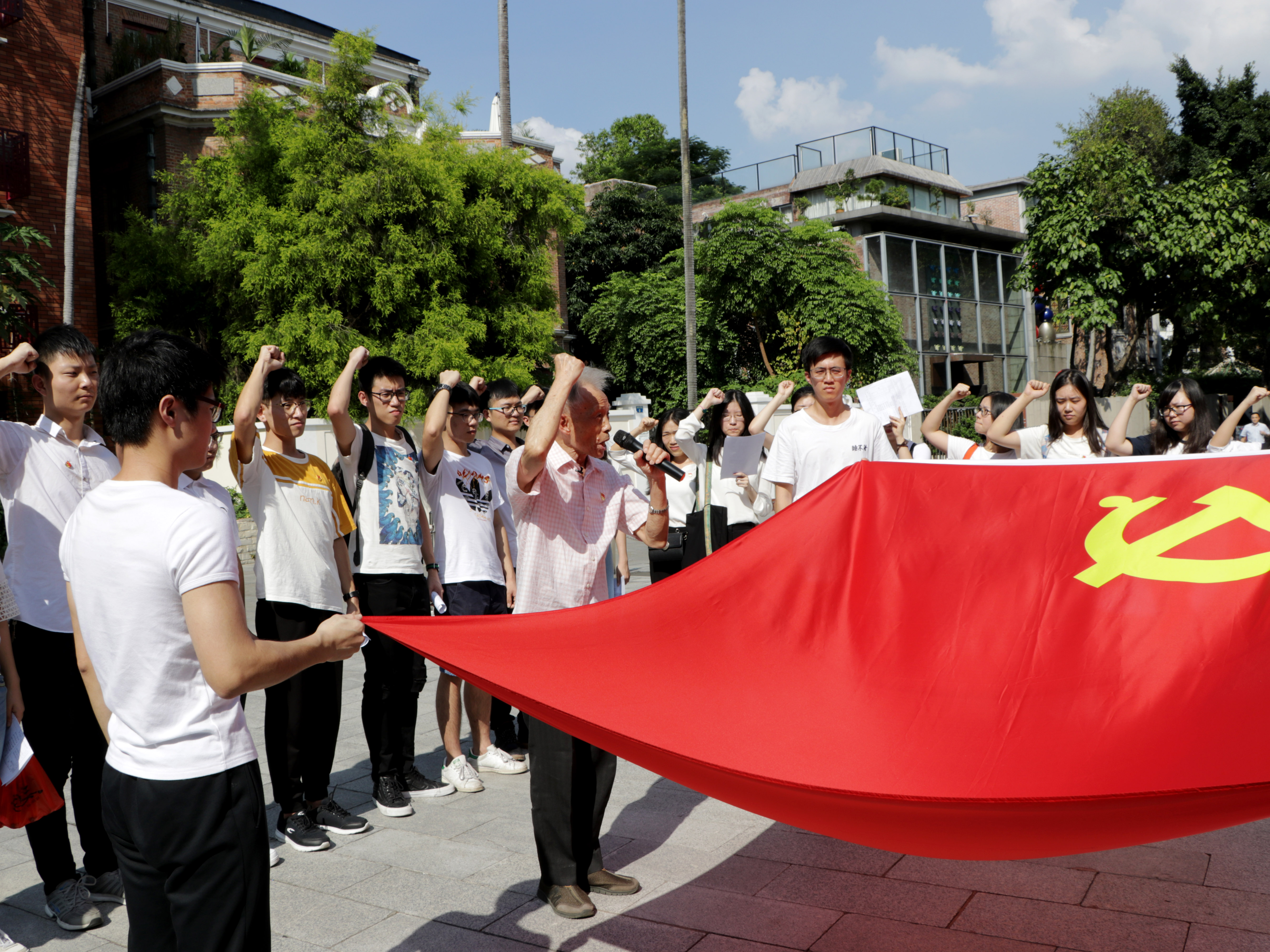 2018年6月28日下午,我院党委和建筑学院党委在中共三大会址纪念馆门前隆重举行了庆祝建党97周年暨新党员入党宣誓仪式,并参观了中共三大会址纪念馆。学校关工委郑璟老师及两个学院的教师及党员代表等50余人参加了本次活动。