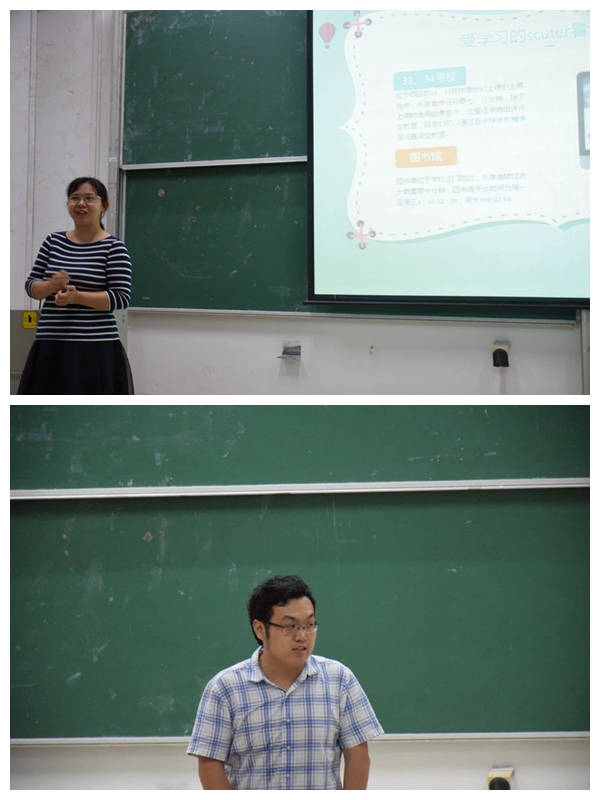 2018年9月1日晚6点,会议在34号楼103室和104室同时开展,主讲人分别为杨玉婷和吴慈蕙两位师姐。会议伊始,陆莹老师率先表达对17级的同学们回到本部的欢迎,随后李俭老师公布了将继续担任17级辅导员的职务的消息,赢得了同学们的热烈掌声。