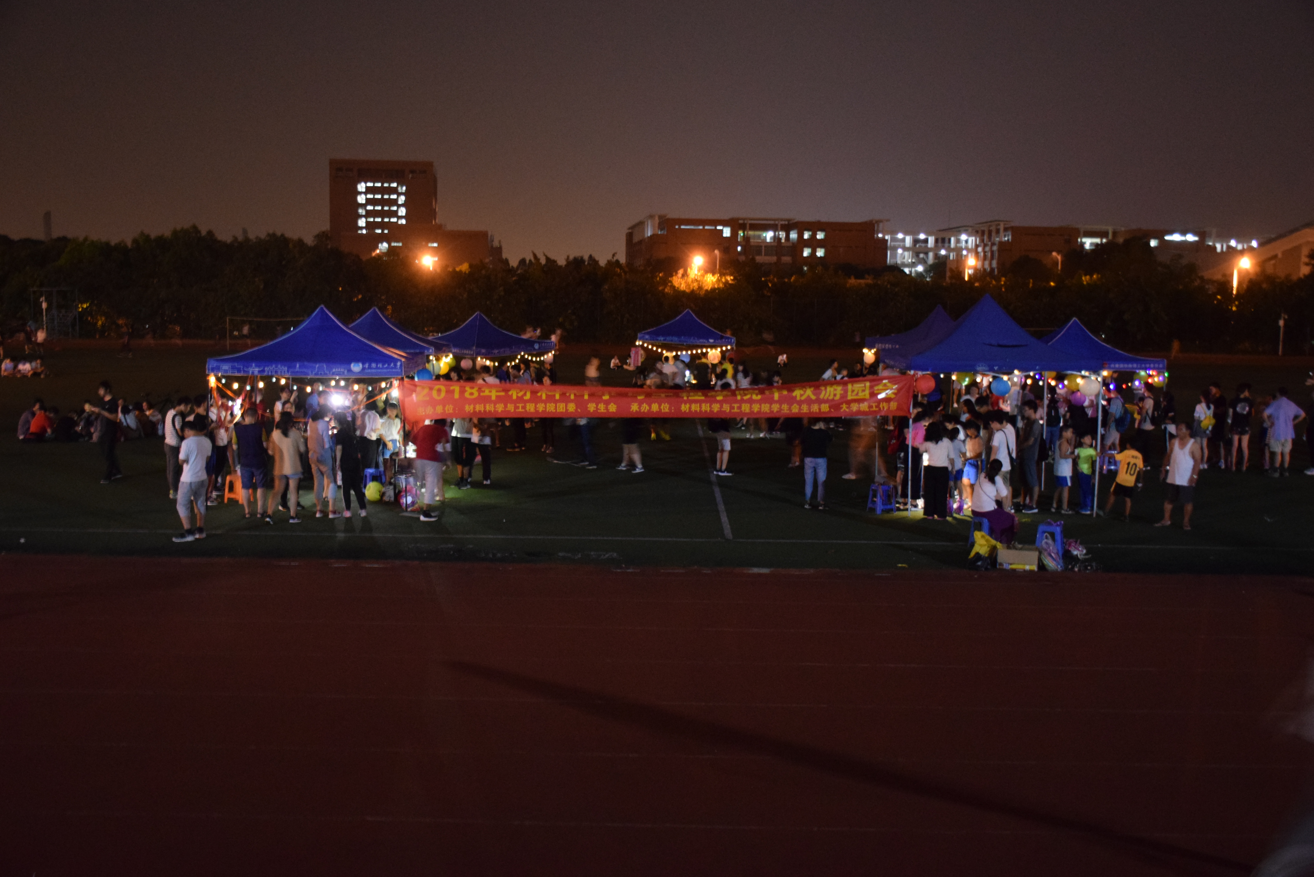 2018年9月21日19:30,伴随着淡淡月光与点点星迹,材料科学与工程学院中秋游园会在大学城校区生活区足球场正式开始。许多18级新生在中秋假期到来之际,怀着对中秋佳节的期盼前来游园嬉戏。