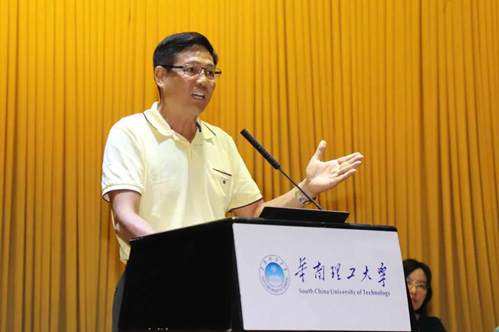 华工77级优秀校友、佛山金辉高科光电材料有限公司董事长吴耀根则与新生们分享了他当年在华工艰苦、奋进的求学历程,勉励同学们要珍惜大学生活,以德立人,全面发展。