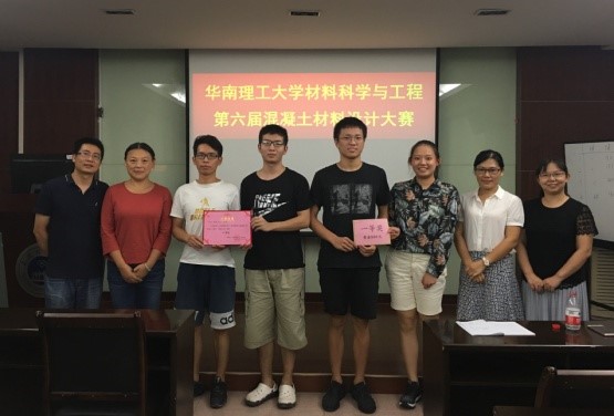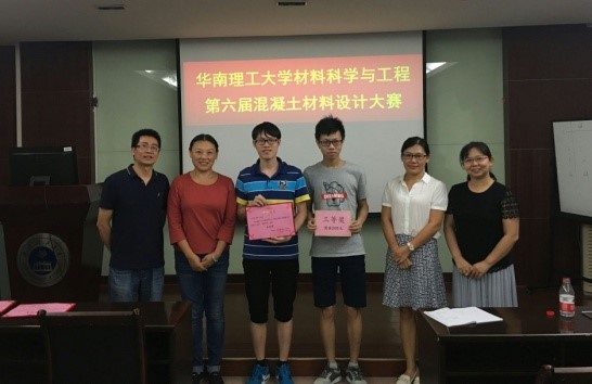 材料科学与工程学院第六届混凝土材料设计大赛于2018年9月10日至9月28日期间成功举办,材料学院副院长殷素红老师以及团委书记陆莹老师出席了本次比赛。参赛人员为2015级无机非金属材料专业的学生。比赛以小组为单位进行,每个小组成员3-4人,考察各小组最终设计的混凝土试件透水系数、抗压强度测试结果(以7d结果评价)、经济性计算结果以及ppt答辩时的表现,进行奖项评定,并给予奖励证书及奖金。比赛设一等奖1名,二等奖2名,三等奖1名,一等奖奖金500元,二等奖奖金300元,三等奖奖金200元。