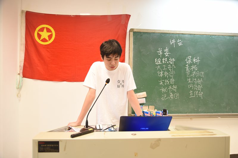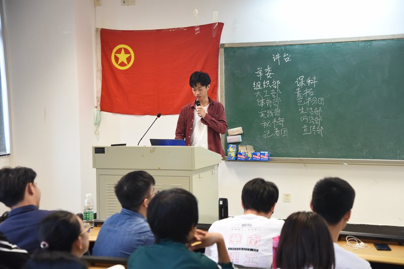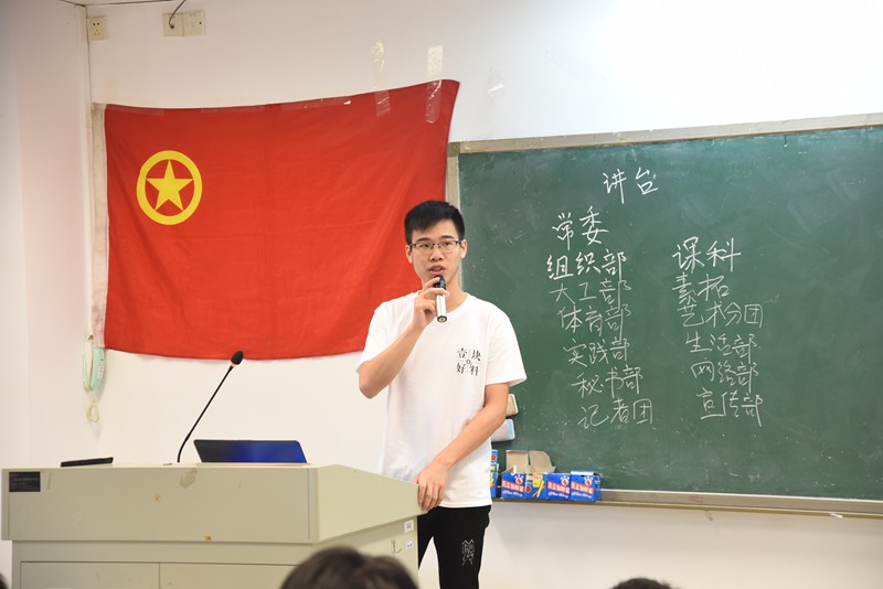 会议最后,由学生会主席吴典师兄介绍几位到场的团学干部并向18级新干事表示热烈的欢迎。吴典师兄在讲话中强调了团学各位干事的工作职责,嘱咐大家要有积极的工作态度,摆正学生干事的正确姿态,认真负责地完成各部门的相关工作。讲话结束后,在一片热烈的掌声中本次团学大会圆满结束。