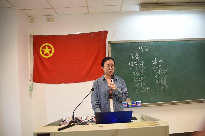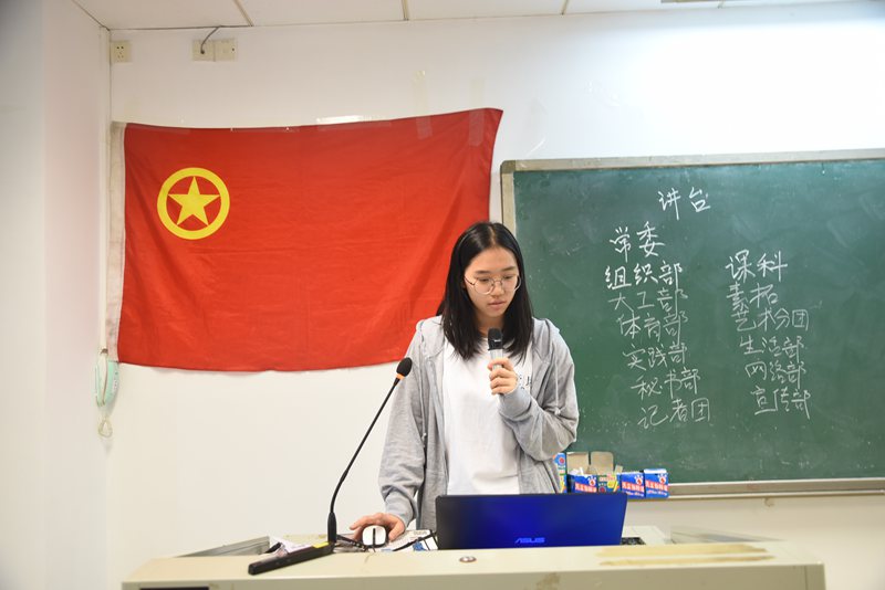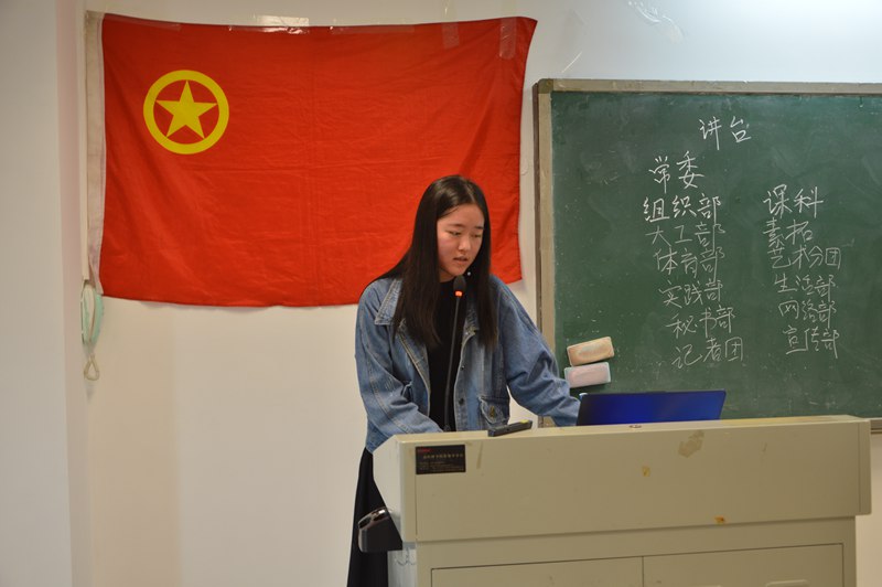会议伊始,由各部门代表按次序上台展示工作职能,日常工作并介绍部门内18级招新情况。首先八个活动部门:素质拓展部,生活部,大工部,组织部,体育部,艺术分团,课外科研部,实践部的几位代表风趣幽默地向新干事们介绍了各部门负责的活动,主要的日常任务,以及丰富多彩的团建活动。充分调动起了同学们的积极性,会议现场掌声不断,气氛热烈。随后四个职能部门:网络部,记者团,宣传部,秘书部的各位代表则详细地向新干事们介绍了各部门的日常工作,以及与各个部门的协同关系。让同学们对团学的工作流程有了更加清晰的认知。