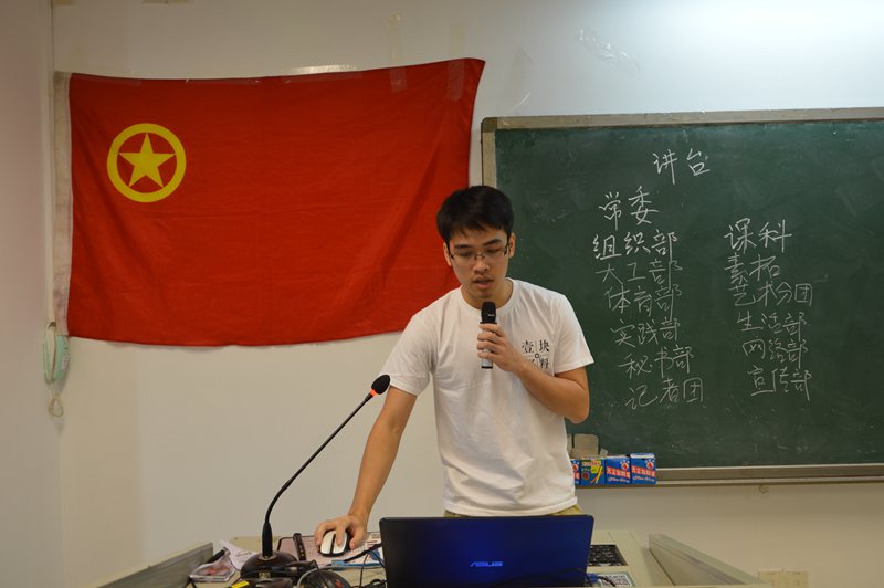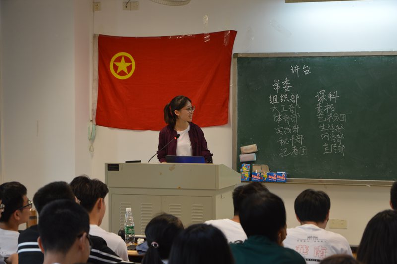 2018年10月13日早8点大学城校区A4教学楼402室,由于台风与十一假期的原因,为迎接18级新干事而举行的团学大会姗姗到来。出席本次大会的有学生会主席吴典师兄,学生会副主席江杰师兄、副主席余腾师兄、副主席潘越师兄、副主席柯涵瀚师兄。